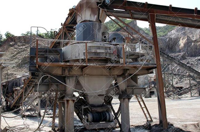 VSI8518衝擊式製(zhì)砂機時產50-230噸,能對鵝卵石、花崗岩、石灰石等(děng)物料破(pò)碎製砂,因進料口(kǒu)較小,允許35mm以(yǐ)下的物料,如原料大於35mm可以搭配一(yī)台(tái)粗碎顎破或兩台PEX250*1000顎(è)破,振(zhèn)動篩可以選擇(zé)兩層篩網的(de)2160振動篩,根據成品沙潔(jié)淨度需求可以(yǐ)搭配2914洗砂(shā)機。