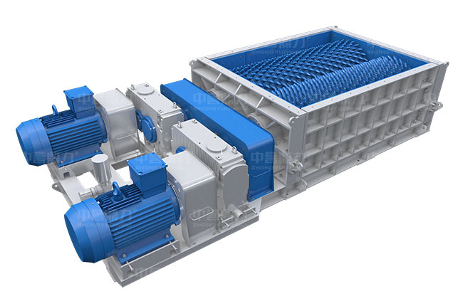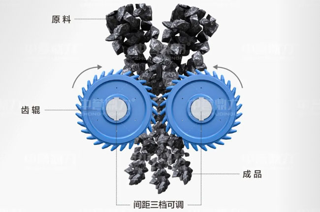 中(zhōng)譽鼎力大型雙齒輥破碎(suì)機破(pò)碎齒盤采用單齒盤拚裝,安裝方(fāng)便,齒輥有獨立的驅動裝置,兩齒輥相對旋轉,入料粒度大,偏心剛性(xìng)調節保障出料粒度。