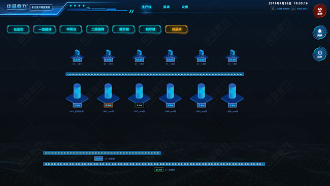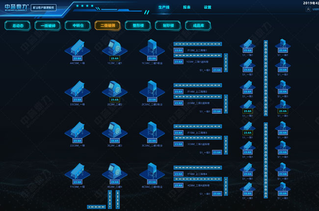 礦山生產智能管理係統生產線設備運行狀態一目了然,各類報警跳停信息清晰可見,各類保護項目設(shè)置齊,利於操作員對局的把控,實現對產能、質量、能耗的完控(kòng)製。
