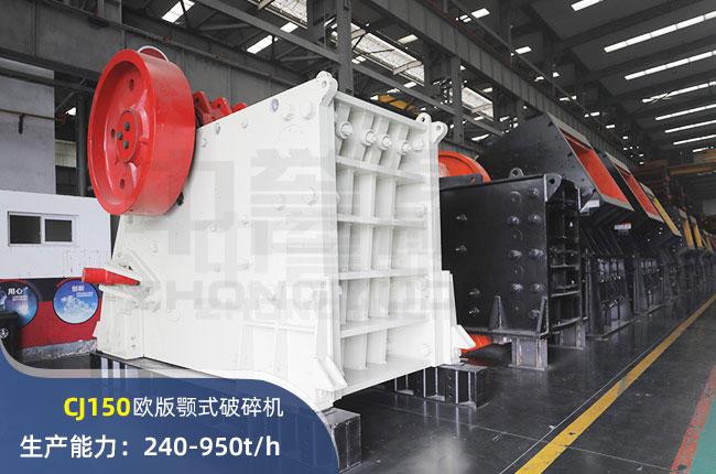 CJ150顎式破碎機進料口尺寸1400×1200mm,進料粒度960mm,出料大小125-250mm,電機功率22kw,處(chù)理可達時產950噸。
