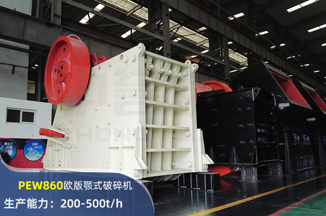 PEW860顎式破碎機(jī)進料(liào)口尺寸860×1100mm,進料粒度720mm,出料大小100-225mm,電機功率132kw,時產可達(dá)500噸左右。