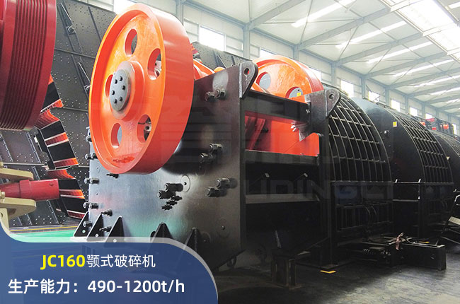 JC160顎式破碎(suì)機進料口尺寸在(zài)1600×1200mm,進料粒度≤1020mm,出(chū)料大小≤150mm,電機功率250kw,時產量在1200噸左右。