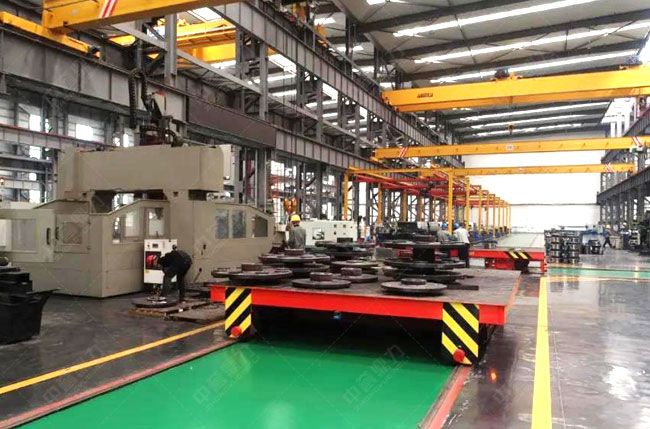 用於(yú)各個工位間(jiān)的(de)產品轉運,具有自動行走(zǒu)、自動移載功能;采用(yòng)滑觸線取電,與工位台之間采用掃描二位(wèi)碼定位(wèi);與工位台(tái)之間采用以太網無線通訊(xùn);主線方向上行走采(cǎi)用變頻(pín)調速(sù),速度範圍0-40m/分鍾;橫向移載采用(yòng)定速輸送產品,速(sù)度12m/分鍾;