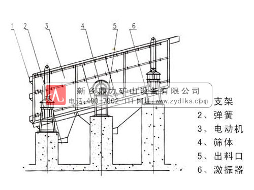 圓振動(dòng)篩主要由篩箱、篩網、振動器及減振彈簧(huáng)等組成。振動篩(shāi)具有(yǒu)長方形的篩(shāi)麵,篩麵通(tōng)過方式安裝在篩箱內,篩(shāi)機側板采用鋼板製(zhì)作而(ér)成,側板與(yǔ)橫梁、激振(zhèn)器底座采用高強度螺栓(shuān)或環槽鉚釘連(lián)接。振動(dòng)器安裝在篩箱側(cè)板上,並由電動機通過(guò)三角皮帶帶動旋轉(zhuǎn),產生離心慣性力(lì),迫使篩箱振動,該係列篩機采用座(zuò)式安裝,篩(shāi)麵傾角的調整可通過改變彈簧支座位置高度來(lái)實現。