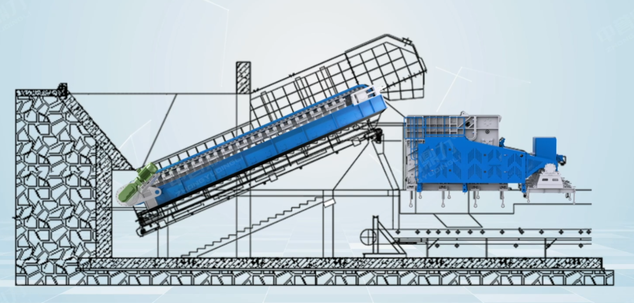 從工(gōng)藝設計角度來說,傳(chuán)統旋回破進(jìn)料模式無喂料裝置,對於較大物料的滑落較為(wéi)不利,對原料的堵塞需要更(gèng)多的應對時間。而臥式旋回破與振動給料機或板喂機搭配,可以減少(shǎo)此類(lèi)問題(tí)的發生以及實(shí)現快速處理(lǐ)。